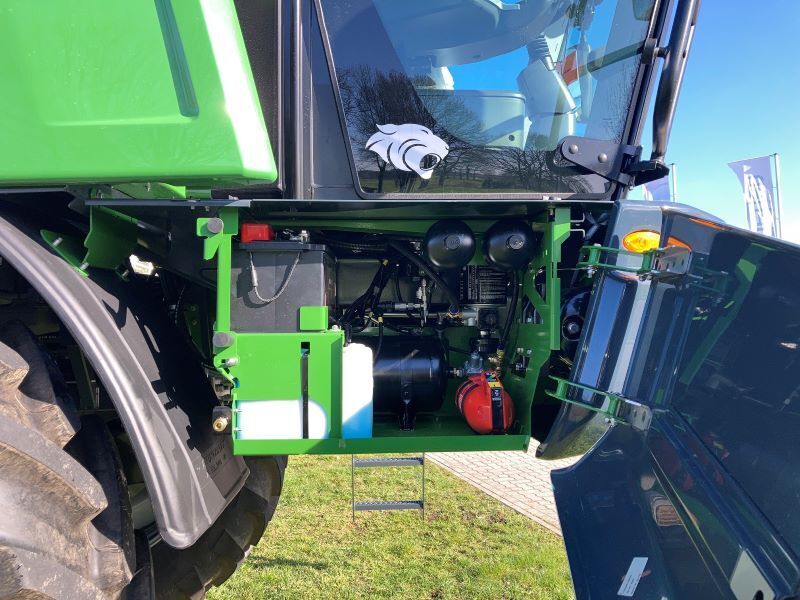 Die selbstfahrende Feldspritze erhält eine Druckluft-Bremsanlage und kann nun einen zusätzlichen Tank mit zum Feld ziehen.