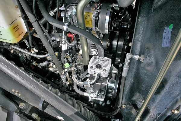 Trotz der enormen Größe des Quadtrac-Flaggschiffes war es für die Entwickler der Dipl.-Ing. Tietjen GmbH eine Herausforderung, alle Komponenten des ca. 100 Teile umfassenden Nachrüstsatzes in die bestehende Geometrie vom Motor bis zum Heck zu integrieren. So mussten in den engen Motorraum neben dem Druckluftkompressor zahlreiche weitere Bauteile montiert werden. Für die komplexe zusätzliche Elektrik standen die Entwickler im direkten Kontakt mit den Case IH Experten und erhielten von dort alle notwendigen Informationen darüber, wo die neuen elektrischen Elemente in die bestehende Elektrik eingefügt werden können.